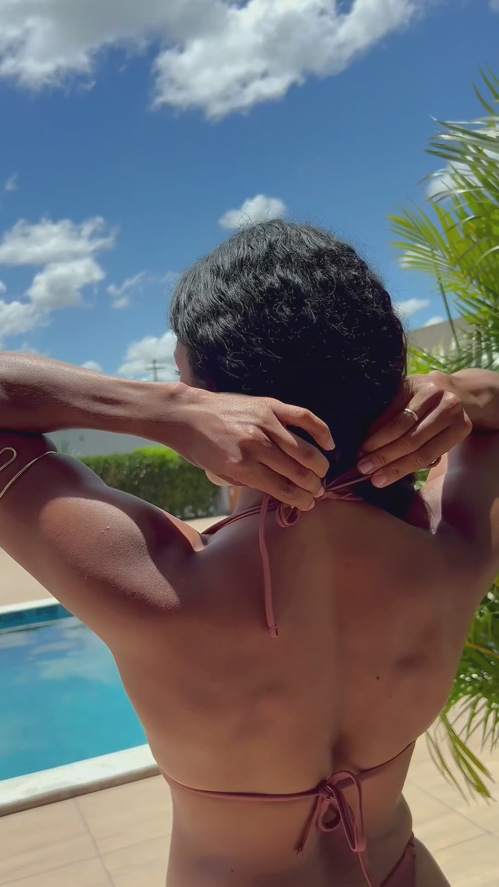 O biquíni, confeccionado em tecido de alta qualidade com elastano, oferece caimento impecável e total conforto, valorizando a silhueta com delicadeza. Já o vestido de tule, com transparência sutil e toque suave, traz movimento e um ar de sensualidade elegante, ideal para quem deseja um look completo e cheio de personalidade.